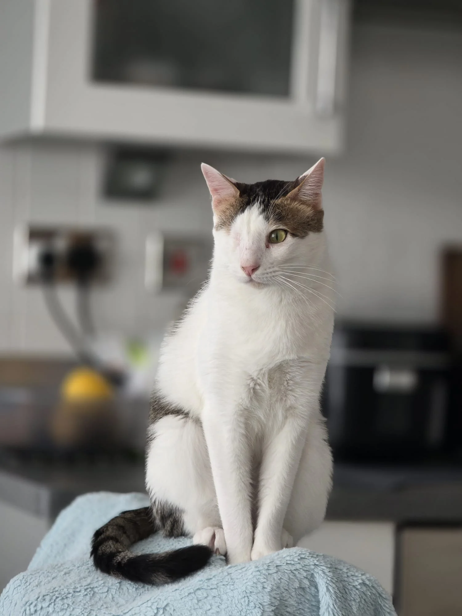 He absolutely adores attention and is just as happy curled up on your lap as he is racing through his tunnel or watching a bit of “cat TV.” Odin has a funny, endearing habit of falling asleep mid-stretch, often looking like he’s paused halfway through a yoga session.